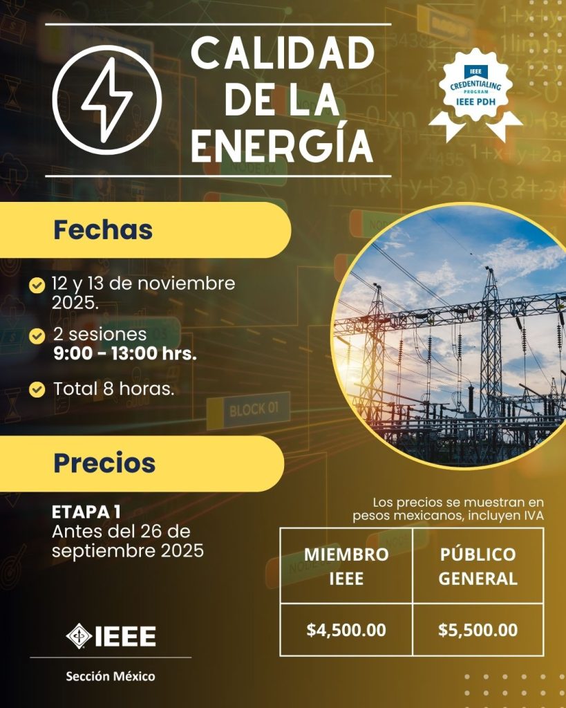 Después del curso, a cada participante que haya concluido exitosamente, a criterio de los instructores, se le proporcionará un Certificado emitido por IEEE que cubrirá 8 PDH (Horas de desarrollo profesional) y una Constancia DC-3.